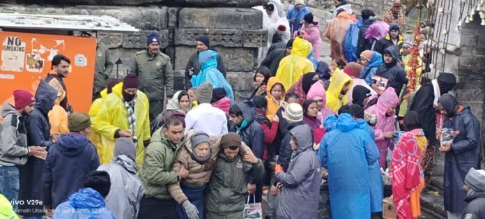 भारी बर्फबारी के बीच पहुंच रहे श्रद्धालुओं के सुगम दर्शनों को मुस्तैद रही रुद्रप्रयाग पुलिस।