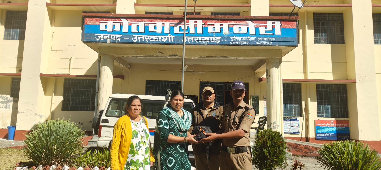 बीड़, महाराष्ट्र से चारधाम यात्रा पर आयी महिला श्रद्धालु श्रीमती मेघा रमाकांत धर्माधिकारी (54 वर्ष) द्वारा कल 10.10.2025 को कोतवाली मनेरी पर सूचना दी गयी कि गंगोत्री धाम दर्शन करने के उपरांत वह वापस लौटते समय रास्ते में डबरानी पुल के पास देर सांय को एक रेस्टोरेंट में चाय पीने के लिए रुके थे, उनका पर्स रेस्टोरेंट मे छूट गया है। पर्स में 35 हज़ार की नकदी,आधार कार्ड, अन्य जरुरी कागजात व सामान रखा है। मनेरी पुलिस टीम द्वारा महिला तीर्थंयात्री के पर्स के सम्बन्ध में जानकारी जुटाते हुये, रेस्टोरेंट मालिक के पास से पर्स प्राप्त कर आज 11.10.2025 को महिला श्रद्धालु मेघा रमाकांत को कोतवाली मनेरी पर बुलाकर खोये पर्स को नकदी, कागजात व सामान के साथ वापस लौटाया गया। श्रद्धालु द्वारा पुलिस टीम का धन्यवाद ज्ञापित किया गया।