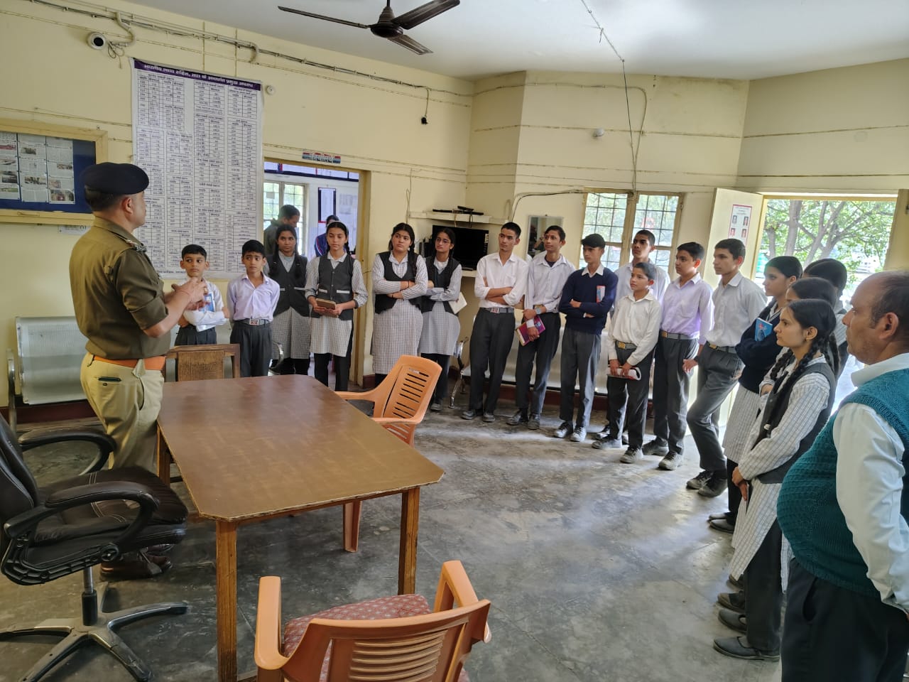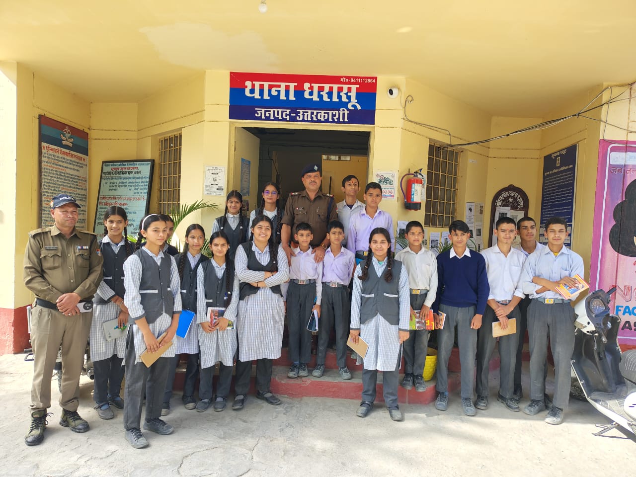 कार्यक्रमों के अंतर्गत थाना धरासू पुलिस द्वारा सरस्वती विद्या मंदिर चिन्यालीसौड़ के छात्र-छात्राओं को थाने पर आमंत्रित कर थाना भ्रमण कराया गया। इस दौरान उन्हें पुलिस की कार्यप्रणाली, शिकायत निस्तारण की प्रक्रिया, एफआईआर दर्ज कराने की विधि, साइबर अपराधों से बचाव, साइबर हेल्पलाइन नंबर 1930, डायल 112, महिला हेल्पलाइन, नशे के दुष्प्रभाव तथा आत्मरक्षा के उपाय एवं नये आपराधिक कानूनों की विस्तृत जानकारी दी गई।