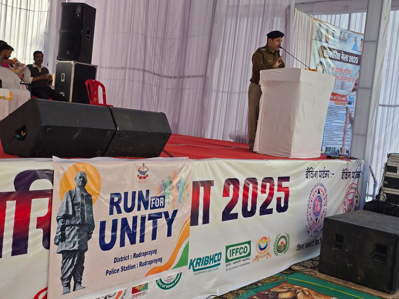 आज दिनांक 31 अक्टूबर 2025 को प्रभारी निरीक्षक कोतवाली रुद्रप्रयाग मनोज नेगी ने वरिष्ठ उपनिरीक्षक कोतवाली रुद्रप्रयाग महेश रावत के साथ गुलाबराय मैदान रुद्रप्रयाग में चल रहे सहकारिता मेला 2025 में आई जनता को साइबर क्राइम व साइबर क्राइम से बचाव के तरीकों की जानकारी देकर जागरुक किया गया और जनता के मध्य साइबर सुरक्षा से सम्बन्धित पम्पलेट वितरित किए गए। साथ ही उपस्थित जनमानस को आज के दिवस यानि राष्ट्रीय एकता दिवस तथा लौह पुरुष सरदार वल्लभ भाई पटेल द्वारा देश को एकता के सूत्र में बांधे जाने हेतु दिये गये अविस्मरणीय योगदान के बारे में बताया गया।