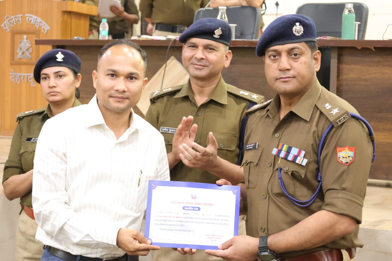 उत्कृष्ट कार्य करने वाले पुलिस कर्मियों को एसएसपी दून ने किया सम्मानित