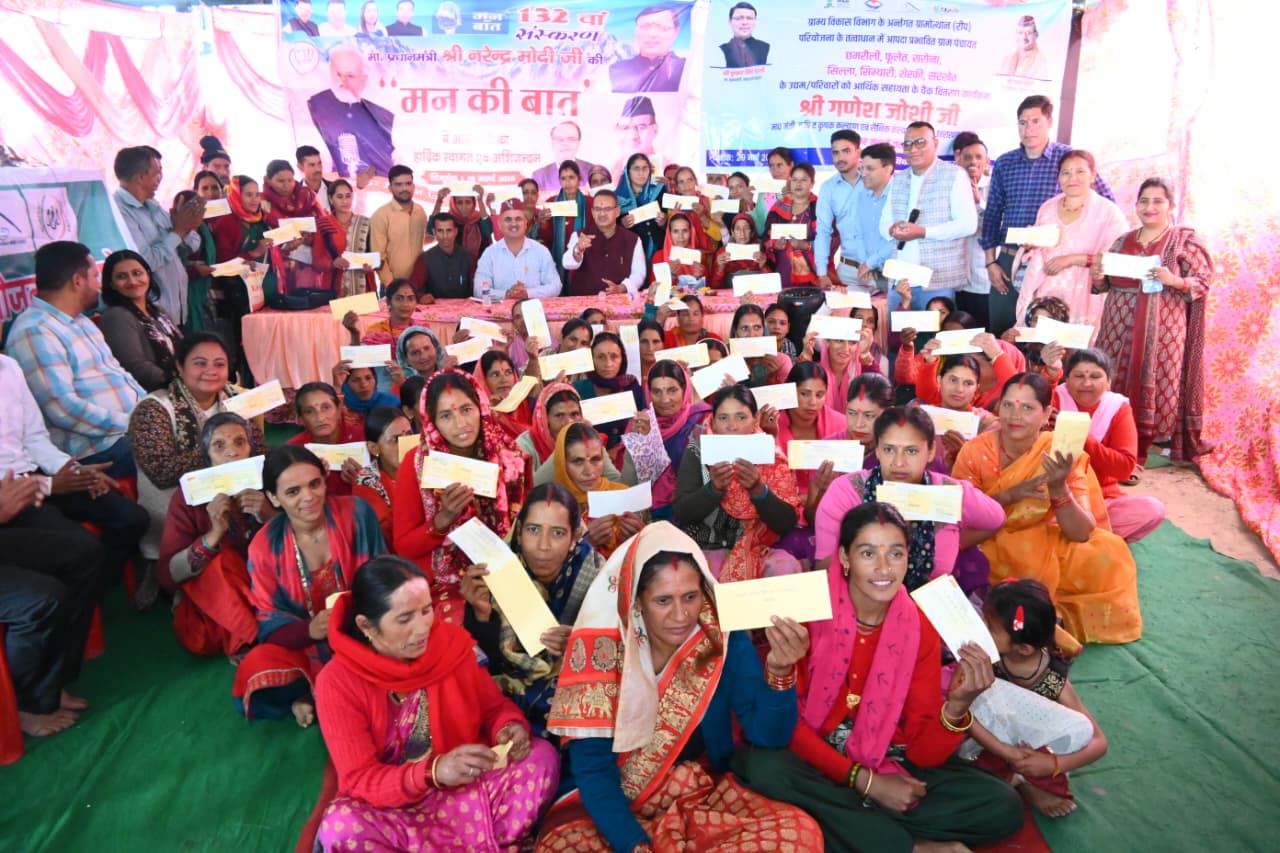 देहरादून, 29 मार्च। कैबिनेट मंत्री गणेश जोशी ने आज मसूरी विधानसभा क्षेत्र के अंतर्गत छमरौली ग्राम पंचायत स्थित नागराजा मंदिर प्रांगण में आयोजित कार्यक्रम में आपदा प्रभावित परिवारों को राहत प्रदान करते हुए 74 उद्यमी परिवारों को ₹93 लाख से अधिक की सहायता राशि के चेक वितरित किए।