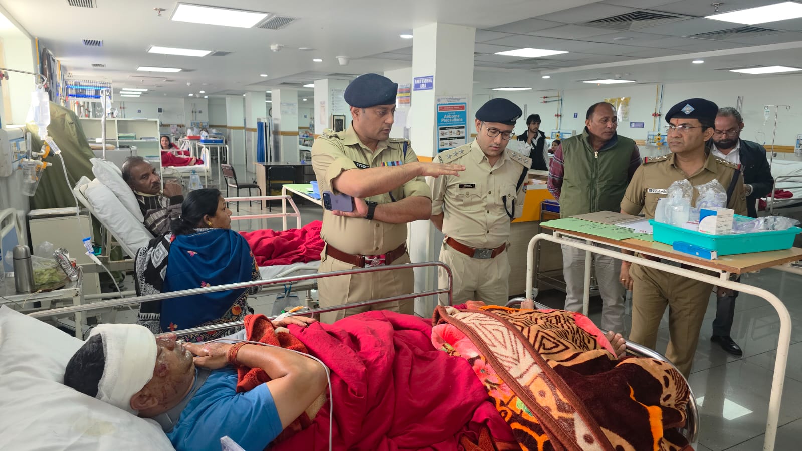 डाक्टरों से घायल पुलिस कर्मी के स्वास्थय की जानकारी प्राप्त कर उन्हें बेहतर से बेहतर इलाज उपलब्ध कराने हेतु उपस्थित अधिकारियों को दिये निर्देश।